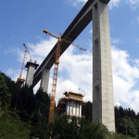Mit rund 165 m Höhe ist der Talübergang Lavant die zweithöchste Brücke Österreichs. Aufgrund ständig hoher Windgeschwindigkeiten wurde die kranabhängige Geführte Kletterschalung Xclimb 60 eingesetzt um den raschen 2-Tages-Takt erreichen zu können. Beim Umsetzen ist das System immer mit dem Bauwerk verbunden.