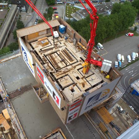 Die Baufirma errichtete hintereinander 2 der 3 Türme mit der DOKA-Plattform SCP. Die Plattform wurde nach Errichtung des ersten Turmes auf den zweiten Turm umgesetzt.