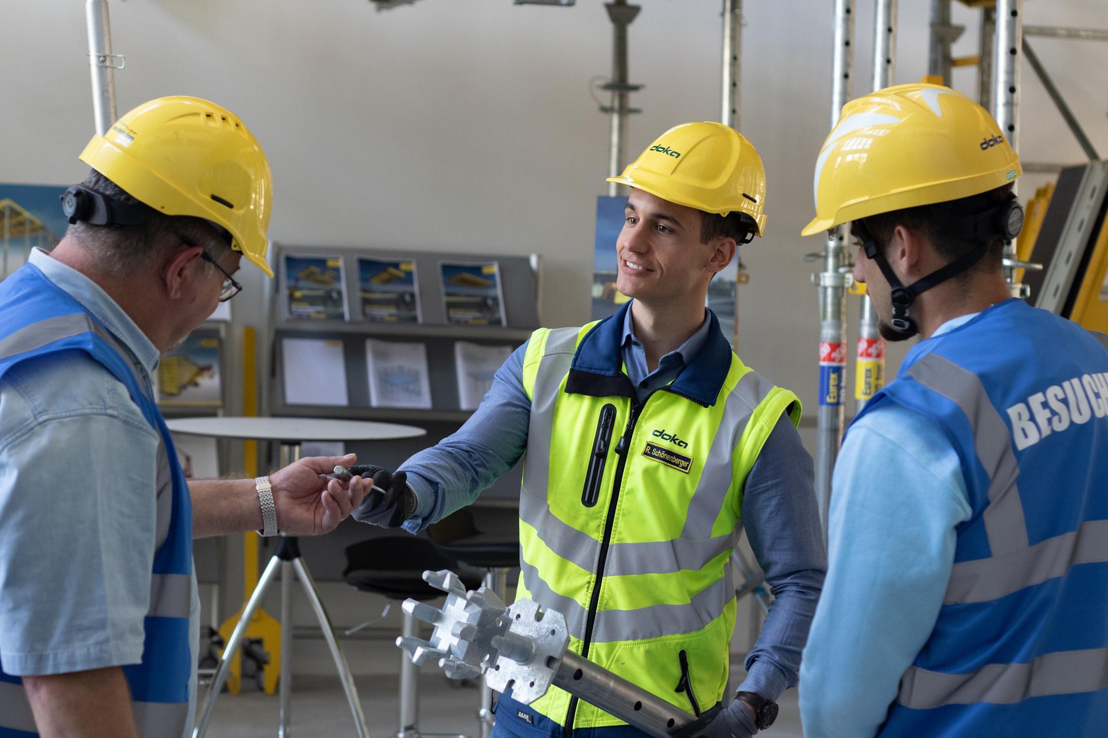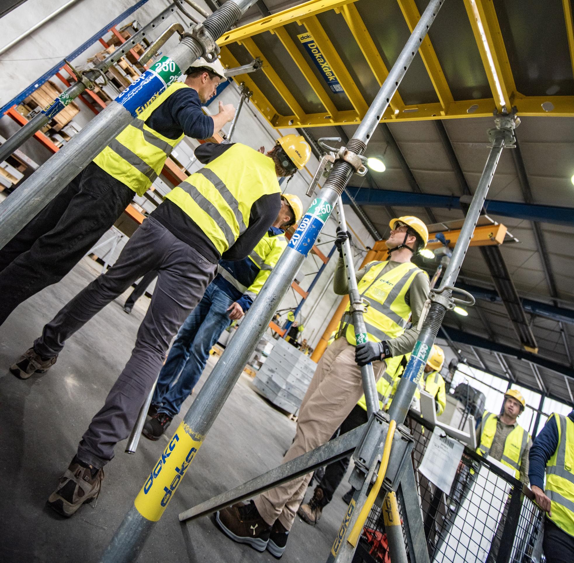 Mit dem Trainingsangebot „Fachkunde Modulgerüst“ macht Doka Kursteilnehmende fit im Umgang mit Ringlock, dem Modulgerüst von Doka. Neben Sicherheitsvorschriften lernen die Fachleute auch die vielseitigen Anwendungsfälle kennen – vom Bewehrungsgerüst bis zum Bautreppenturm. Im Seminar „Qualifizierung zu Prüfungen im Gerüstbau bzw. der Gerüstnutzung“ vermitteln die Gerüst-Profis von Doka theoretisches und praktisches Wissen auf Basis der geltenden TRBS 2121, so das Teilnehmer*innen als zur Prüfung befähigten Person bestellt werden zu können.