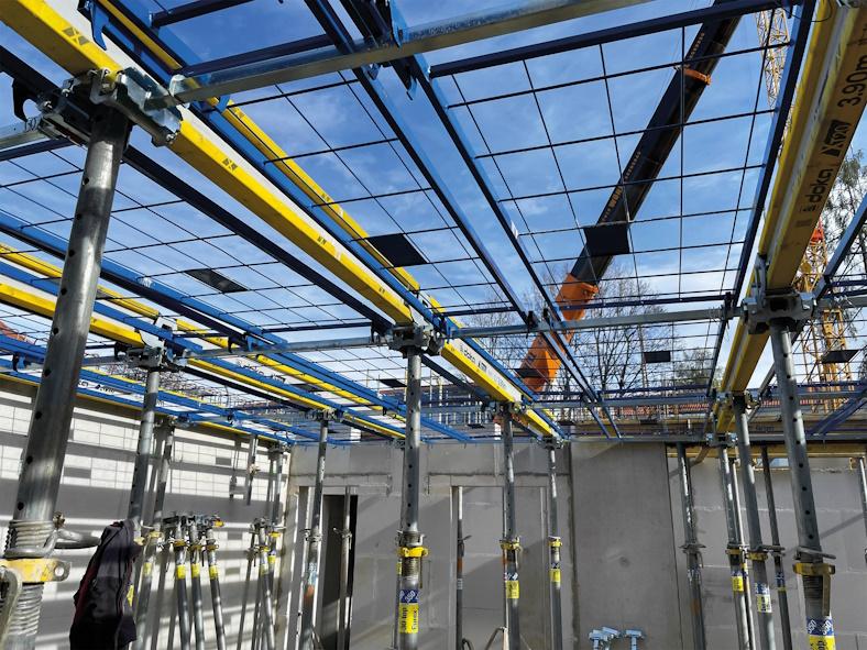 Die DGUV Regel 101-014 verlangt aus Gründen der Sicherheit und der Ergonomie wo möglich immer den Ein- und Ausbau von Schalungssystemen und -elementen aus der gesicherten Standposition, sprich: von unten. In der Praxis ist das nicht immer machbar oder zum Teil auch wenig praktikabel. Beim Einbringen und Positionieren von Fertigteilelementen ist es ohnehin gängige Praxis, dass Mitarbeiter immer wieder an potentiellen Absturzkanten stehen müssen. Ob Ortbeton- oder Fertigteildecke: Oberste Priorität hat die Sicherheit der Personen. Folglich sind insbesondere beim Arbeiten von oben entsprechende sichernde Maßnahmen, vorrangig technische Schutzmaßnahmen (Kollektivschutz), zu ergreifen. Darum erweitert Doka ihr Sortiment nun um das