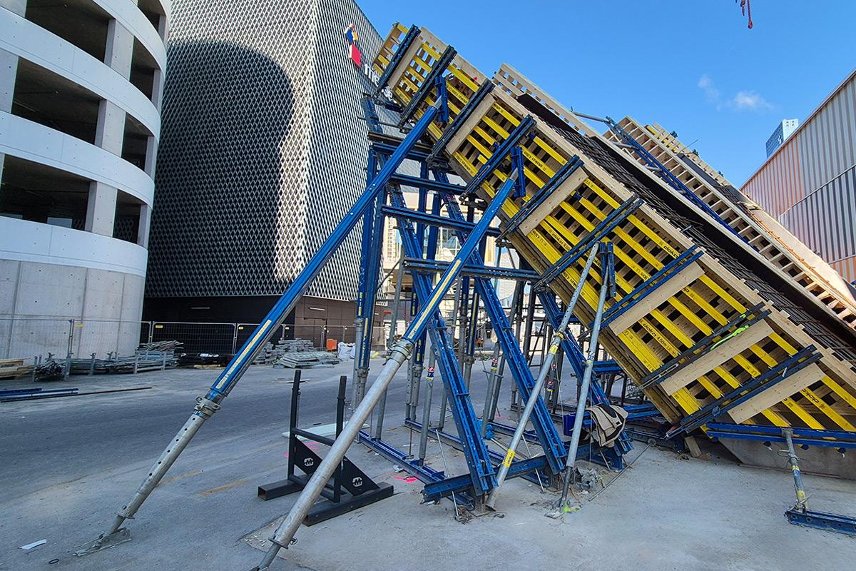 Schlanke, präzise geplante 3D-Schalungskonstruktion mit hochwertiger Schalhaut, wettergeschützter Ausführung und sorgfältig abgestimmter Logistik