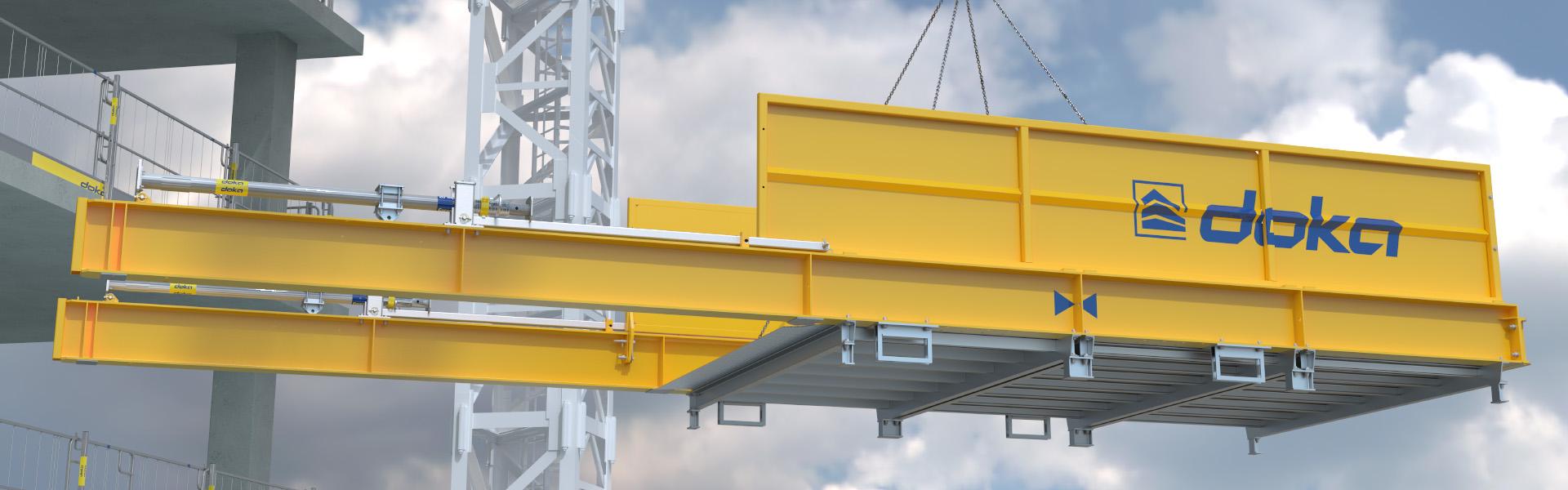 Die Doka-Ausfahrbühne wird komplett vormontiert angeliefert und ist mit nur wenigen Handgriffen einsatzbereit.