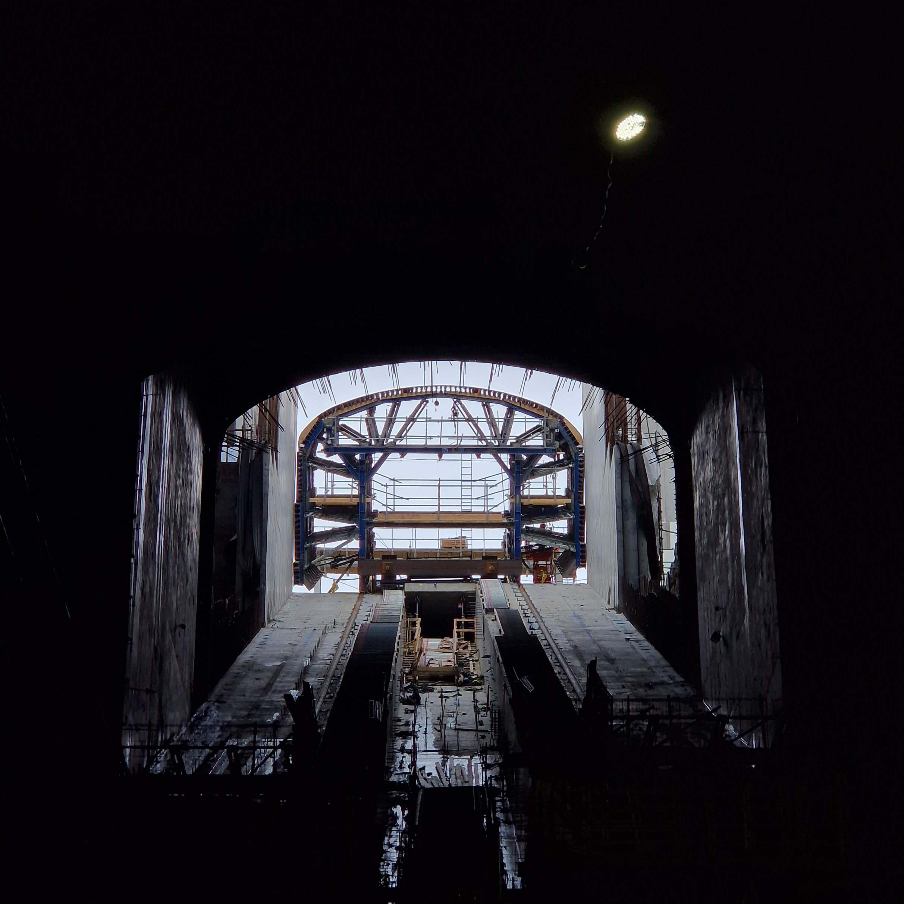 One of the project’s greatest technical challenges inside the tunnel has been the extreme height conditions, heavy loads on slabs with overlying walls, an additional slab level above, and the lack of lifting equipment. To meet these demands, Doka designed an SL-1 tunnel traveller, enabling safe and precise concreting of the 27.3° inclined escalator tunnel.