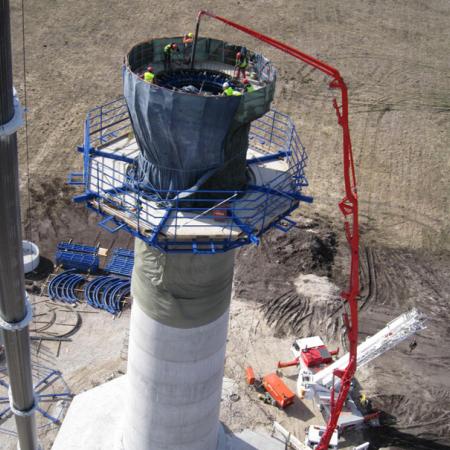 By using the 'Doka wind-turbine formwork', construction firm Skanska was able to shorten the cycle time to just one day, and so come in ahead of schedule.