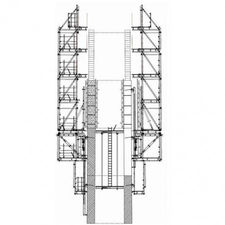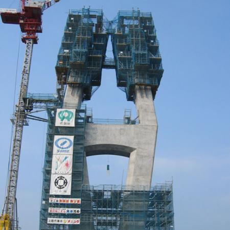 100m korkea, diamantinmuotoinen pyloni valmistettiin Japanissa 16:lla itsekiipeävällä yksiköllä 100. Kiipeäminen tapahtui 5m korkeissa betonointijaksoissa. Rakentamiseen kului näin ollen vain suurin piirtein yksi vuosi.
