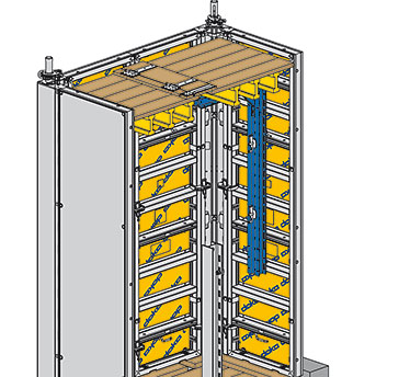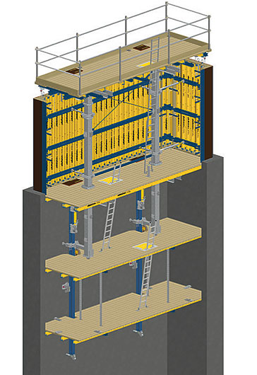 Avautuvilla työtasoilla varustettu malli mahdollistaa samanaikaisen työnteon usella eri tasolla. Näin voidaan eritellä muotitus- ja raudoitustyöt ja siten lyhentää tahtiaikoja. 10 tonnin kuormitettavuus kiipeävää tasoa kohti sallii myös ylimääräisten hyötykuormien, esim. raudoituksen, kehikkojen ja betoninlevittimen, siirtämisen.