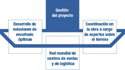 Cada obra pasa su propio proceso, desde la planificación, hasta la finalización. Y cuanto antes nos involucremos, mejor comprenderemos el proyecto, mejor podremos perfilar su rentabilidad. Acompañamos con mucho gusto a nuestros clientes en cada fase de su proyecto de encofrado. Porque ofrecemos todo de un mismo proveedor: productos, servicios, planificación, gestión del proyecto y logística. Esta capacidad de comprender todos los aspectos la ofrecen muy pocos.