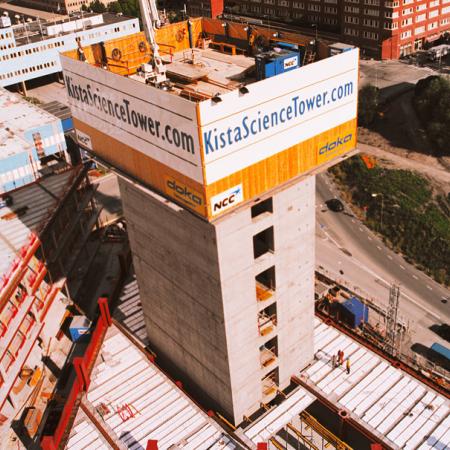 Stockholms högsta byggnad Kista Science City utgör ett landmärke. Genom användning av Doka Plattform SCP kunde byggnadskärnan uppföras ytterst snabbt, säkert och ekonomiskt