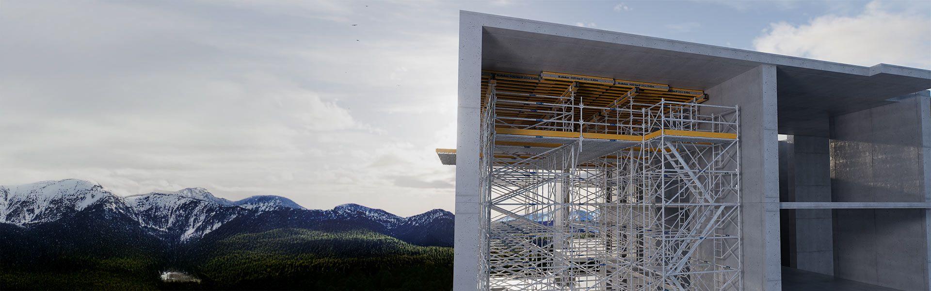 Med en belastningskapacitet på upp till 60 kN per ben är Ringlock Shoring idealiskt lämpat för valv och medelhöga belastningar. I kombination med Doka XT-balkar täcker det ett brett spektrum av standardprojektkrav.
